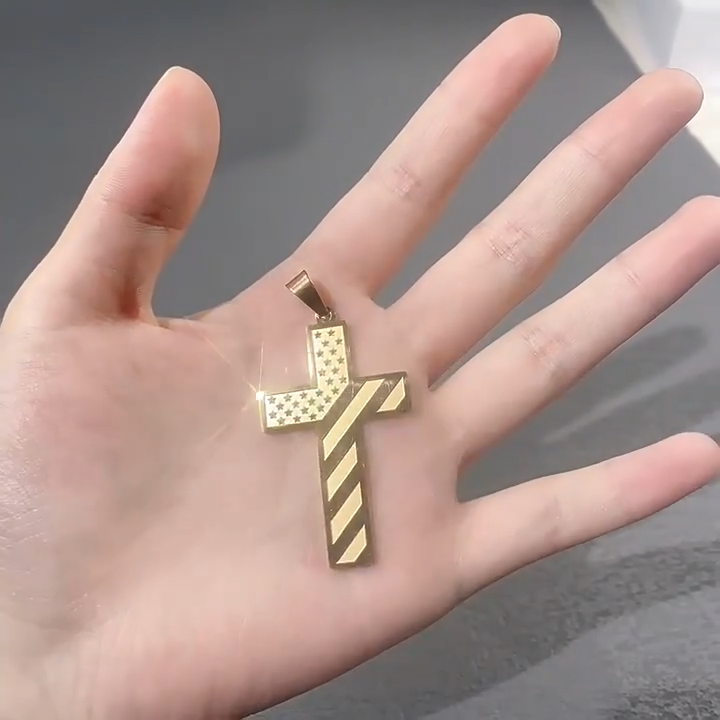 The cross pendant features a clean stars-and-stripes design that’s both bold and refined — a standout piece in any jewelry collection 🌟