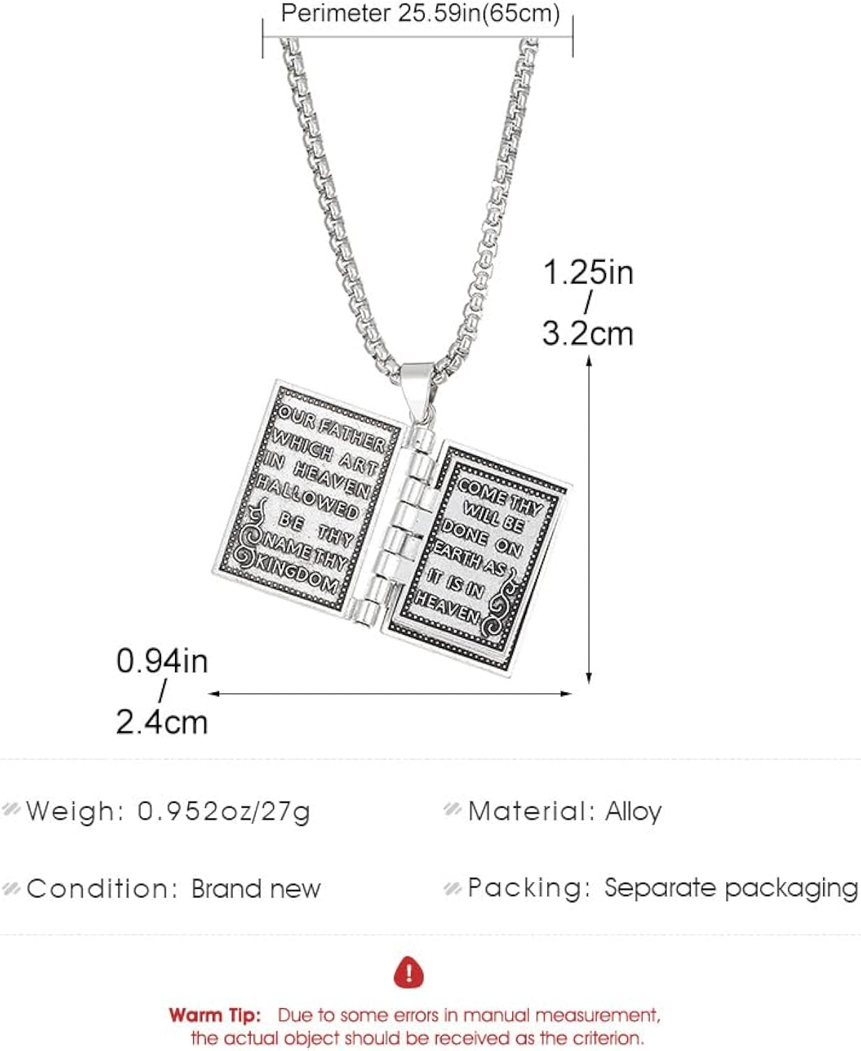 Handcrafted in a vintage punk style, this miniature Holy Bible pendant is openable, revealing engraved scripture inside — so you can carry a piece of God's word close to your heart, wherever life leads. 🙏