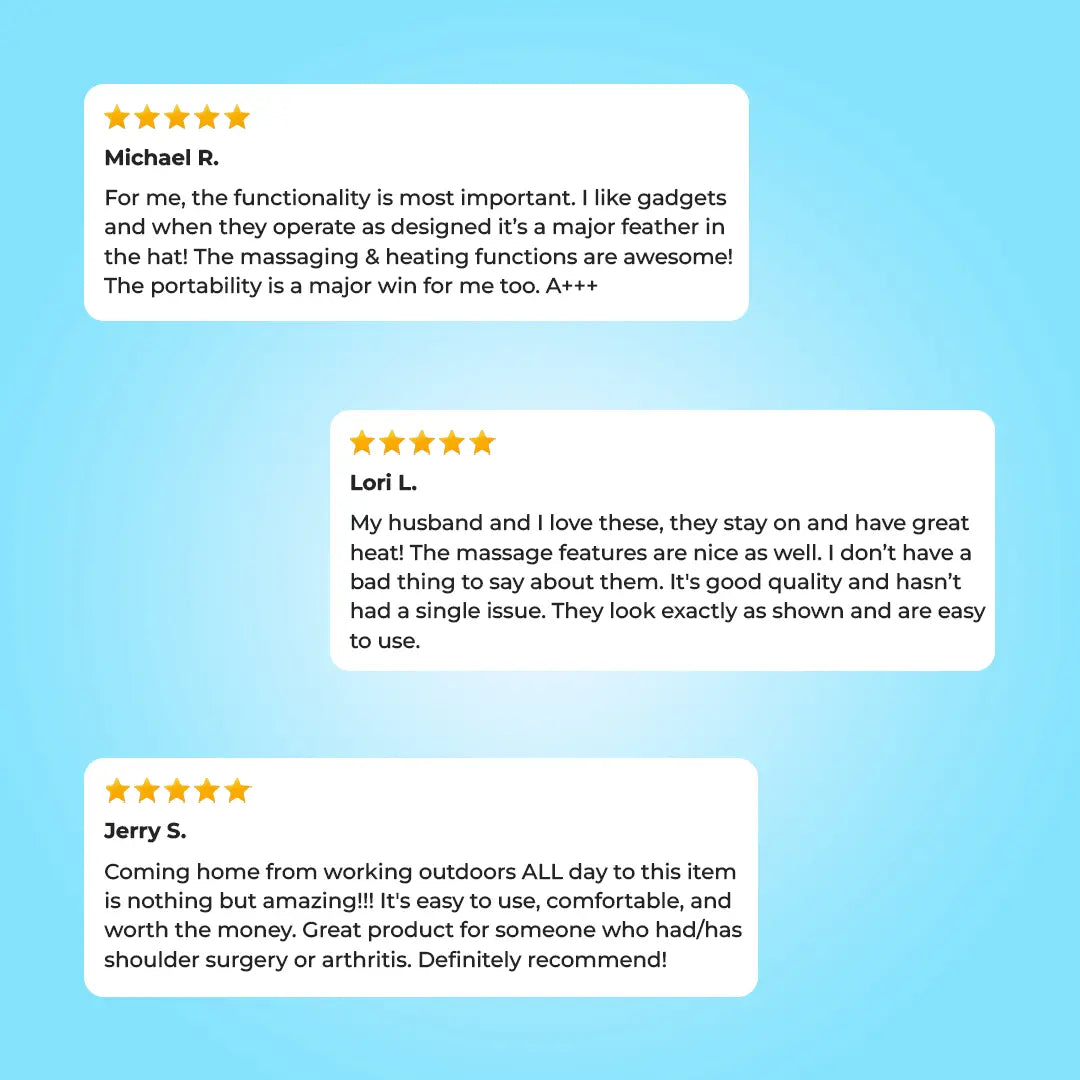 ⭐ Michael R.: “Super functional and portable. The heat and massage combo is awesome!”