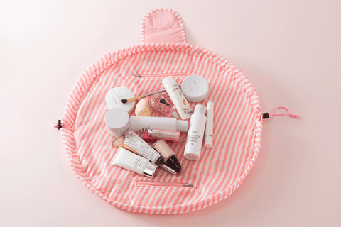 ✔ PACK UP INSTANTLY – Packing up all your products is no longer a chore. Just place everything on the open makeup bag, and pull the strings to close. It really is that simple.