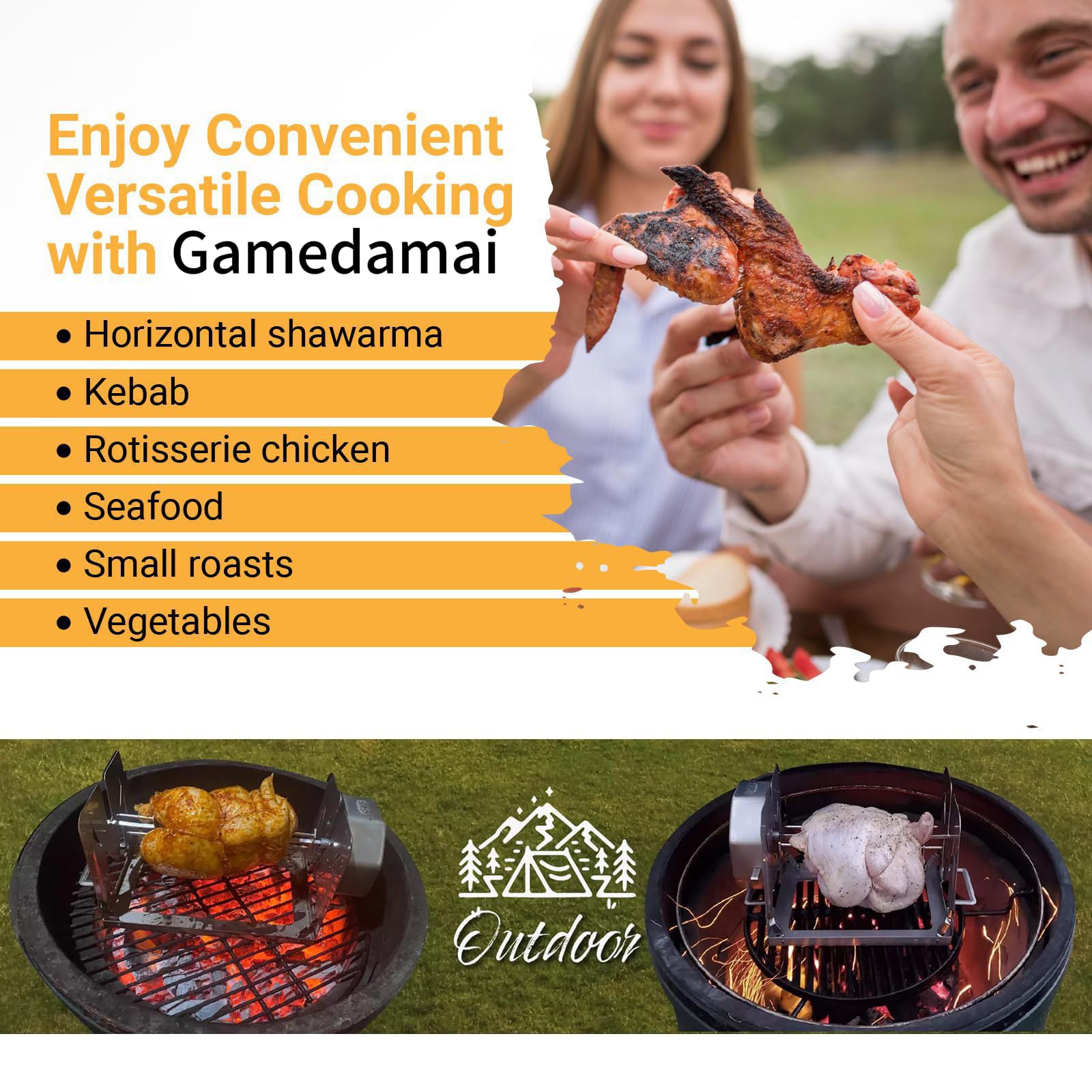 Family Gatherings – Roast chicken, skewers, fish, and more with ease.