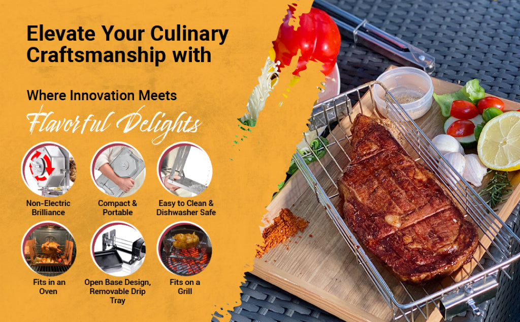 360° Auto-Rotating Mechanism – No power required, rotates automatically for even grilling.