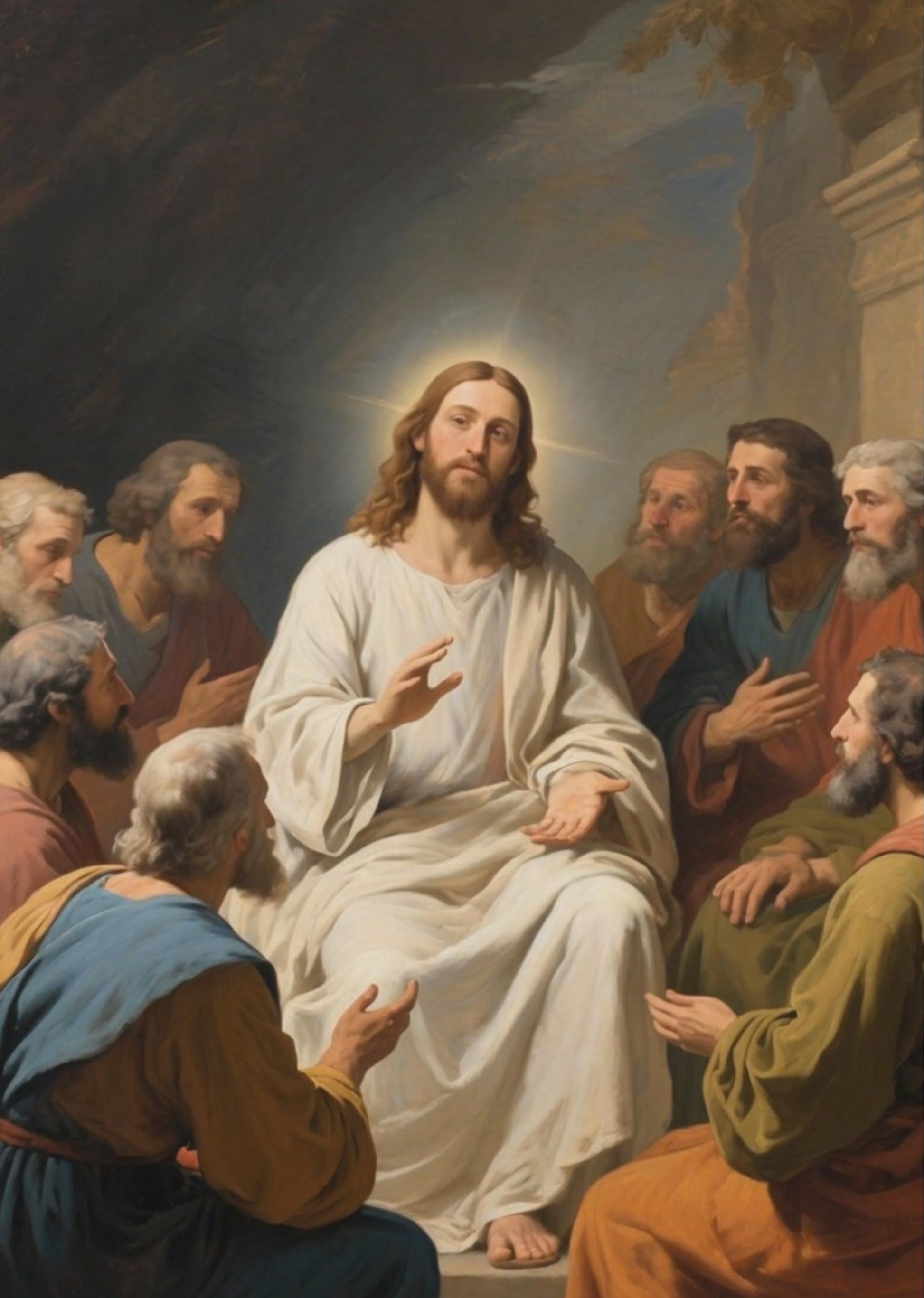 Gather with wisdom. Surrounded by His disciples, Jesus teaches with grace and authority—a timeless moment of spiritual guidance, perfect for quiet reflection as you piece together truth and light.
